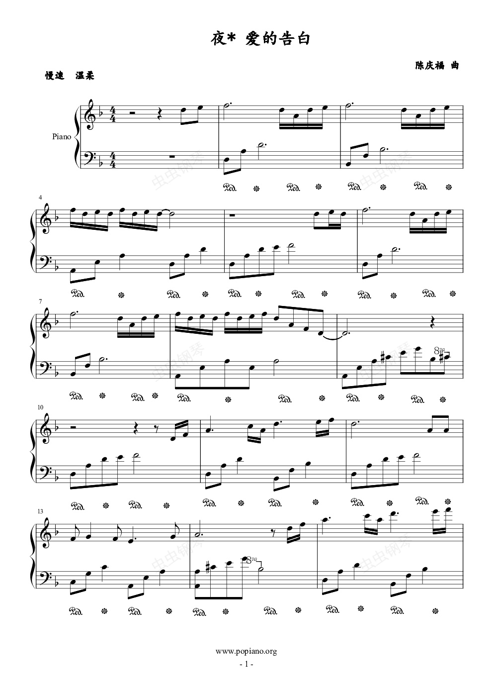 作品介绍:本作品 夜. 爱的告白,是本人夜曲集的第六首作品,前期都有上传前面的夜曲曲目,请各位听友可以更多的关注前期和后期的作品,如果有需要可以可以下载练习,前提是给评分哟!!