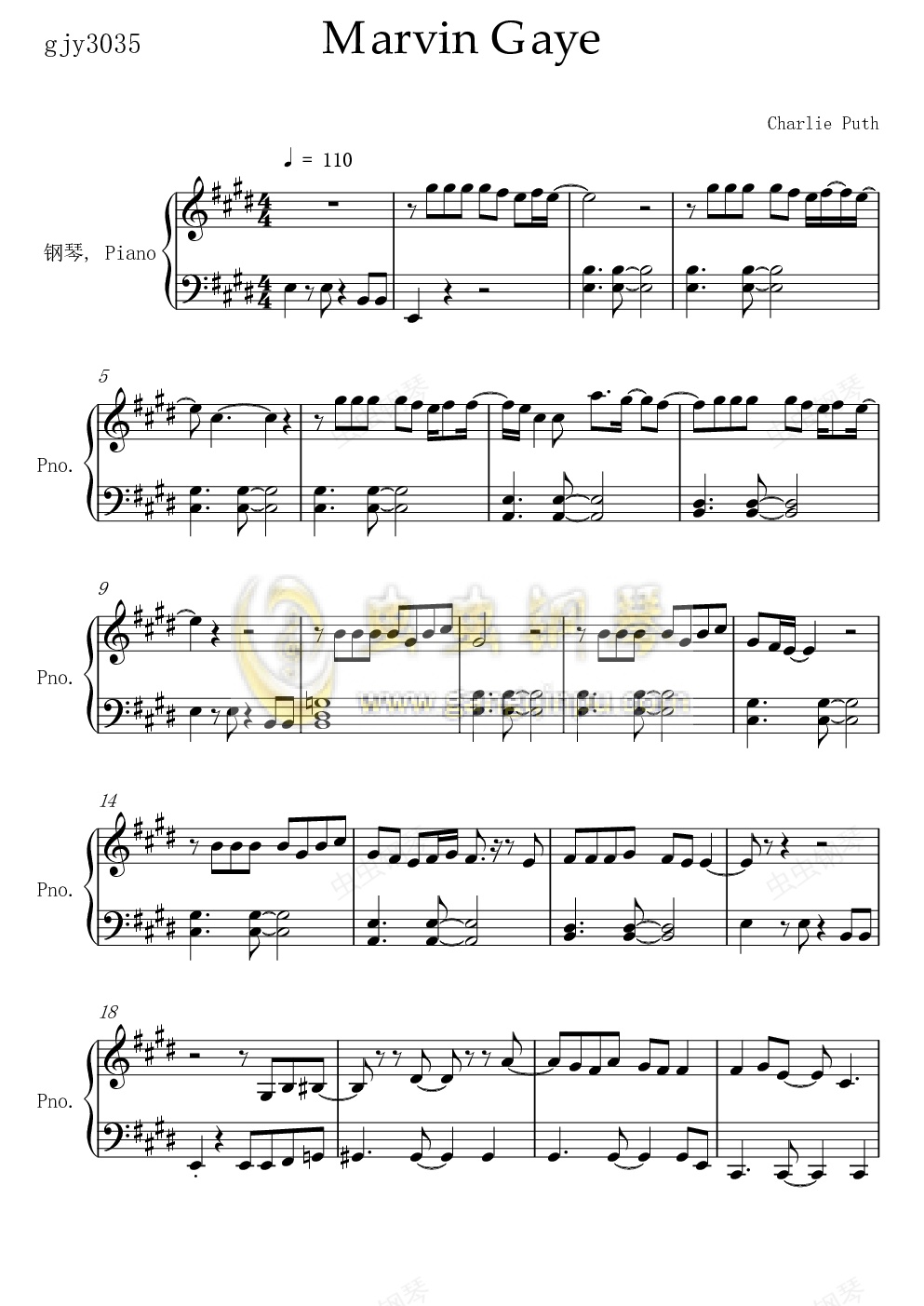 钢琴谱:Marvin gaye