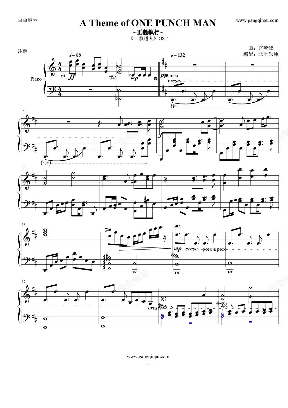 钢琴谱:一拳超人OST - A Theme of ONE PUNCH MAN~正义执行~