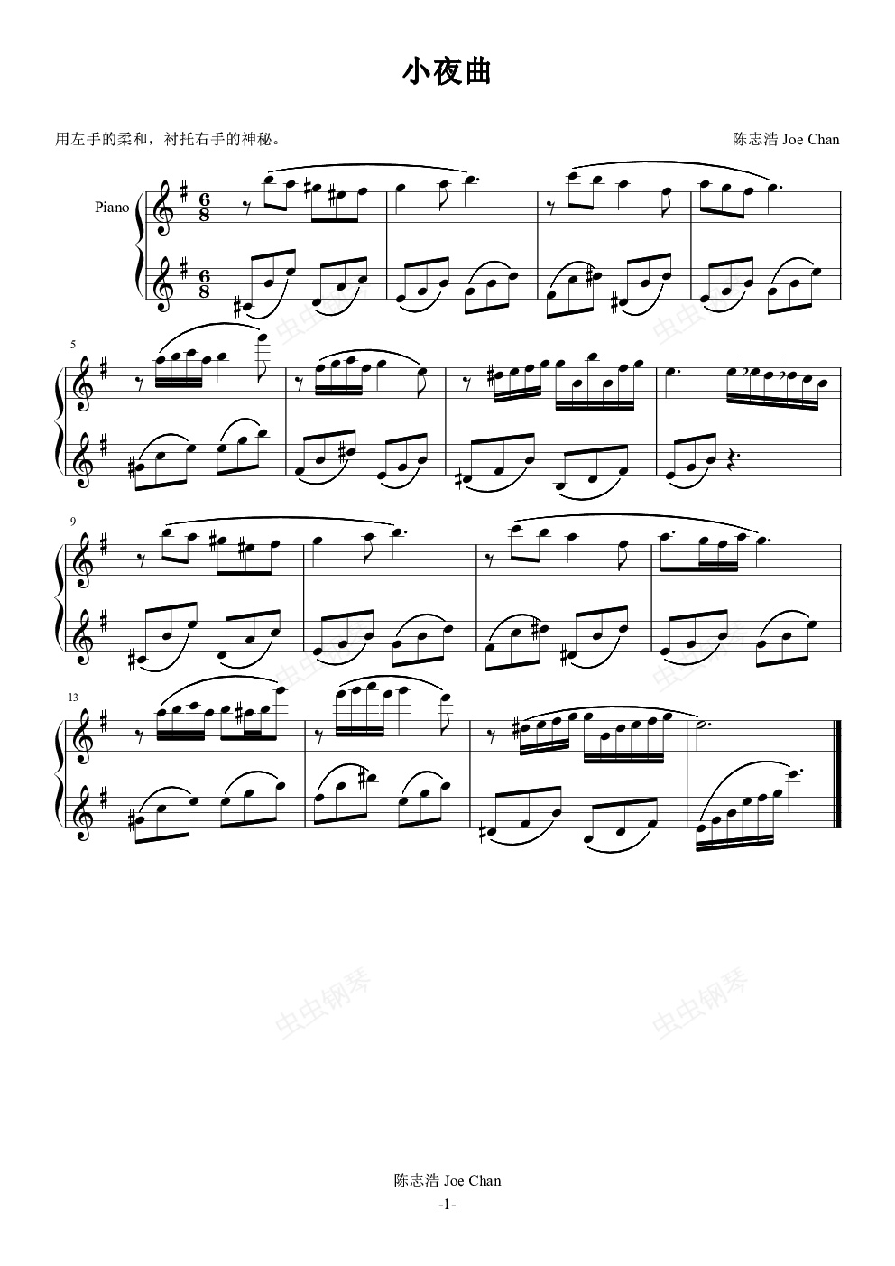 这首短短的小曲,源自某日的灵光一现,希望大家会喜欢这首特别的曲子。 P.S. 弹奏时,左手尽量柔和,衬托右手的神秘。