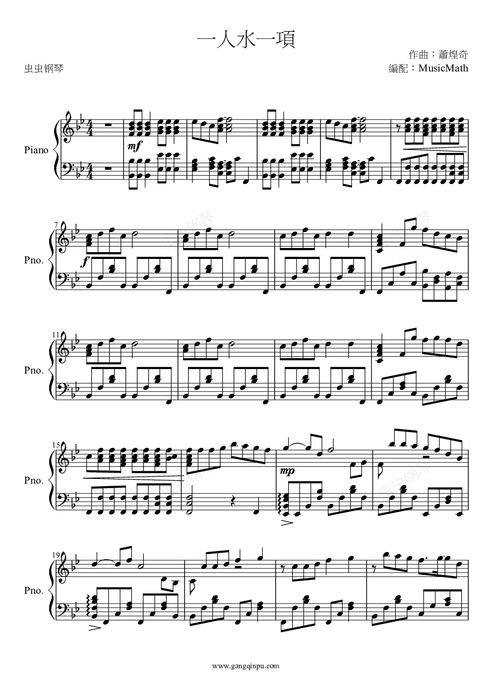 钢琴谱:一人水一项