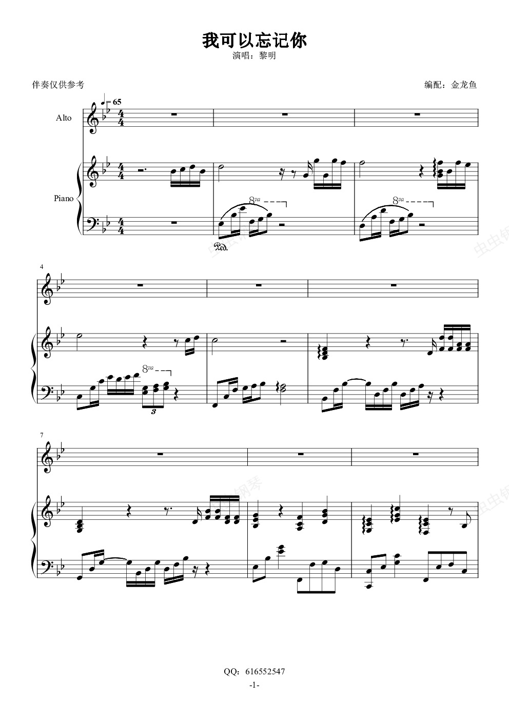 钢琴谱:我可以忘记你-伴奏-金龙鱼