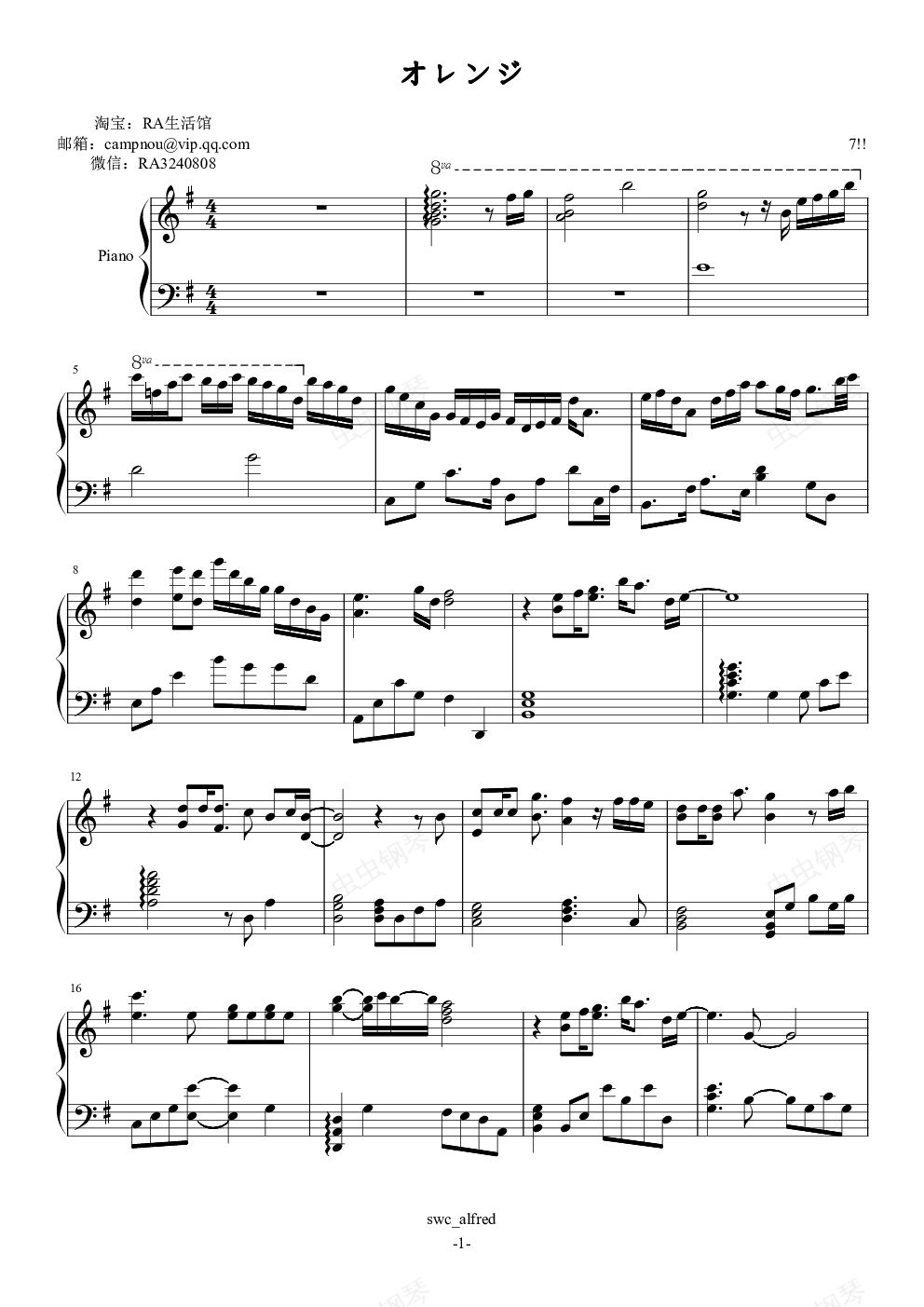 钢琴谱:Orange