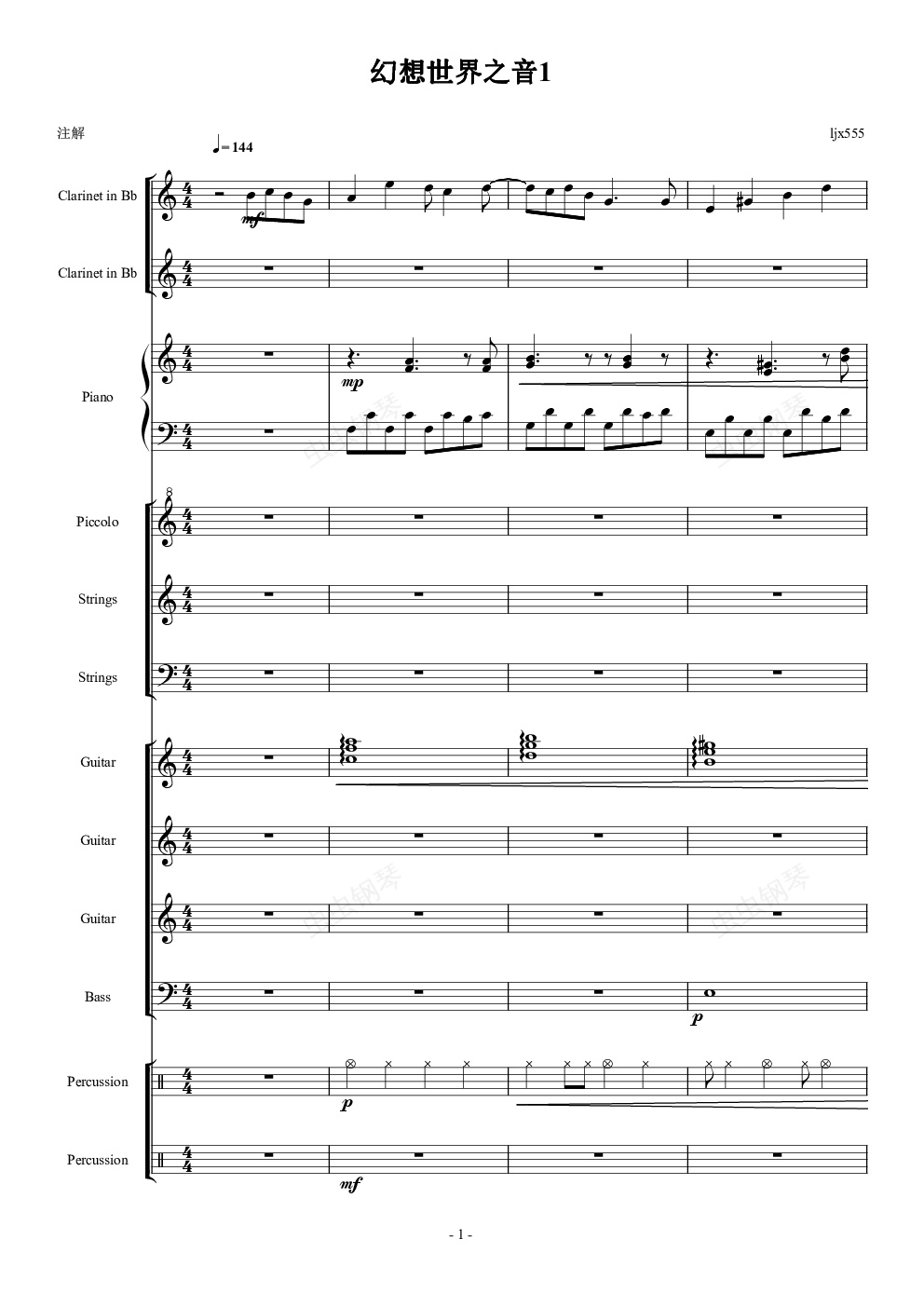 钢琴谱:幻想世界之音1