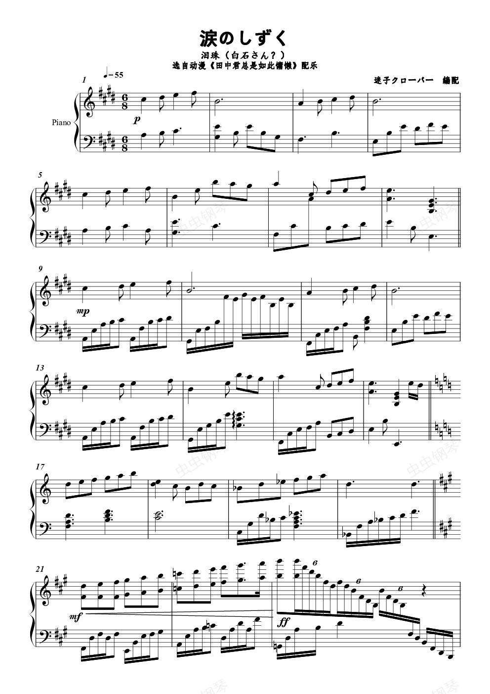 钢琴谱:【田中君总是如此慵懒BGM】涙のしずく
