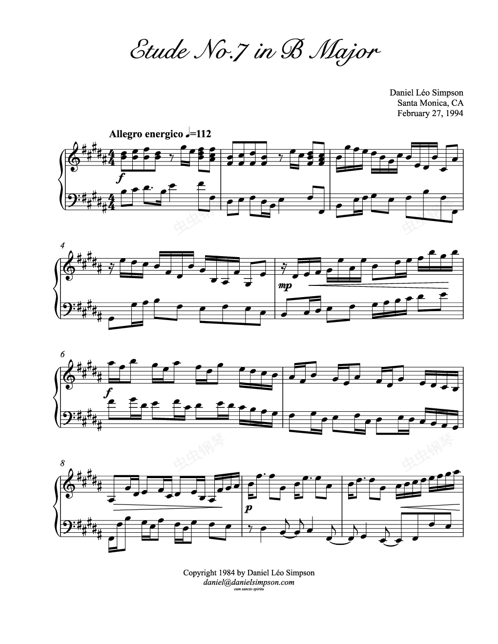 钢琴谱:辛普森B大调练习曲