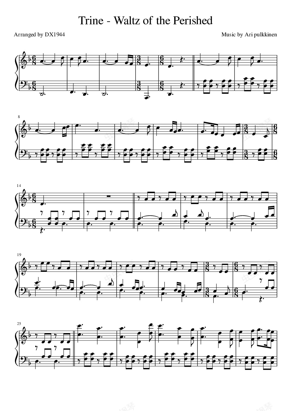 钢琴谱:Trine(三位一体)-Waltz of the Perished