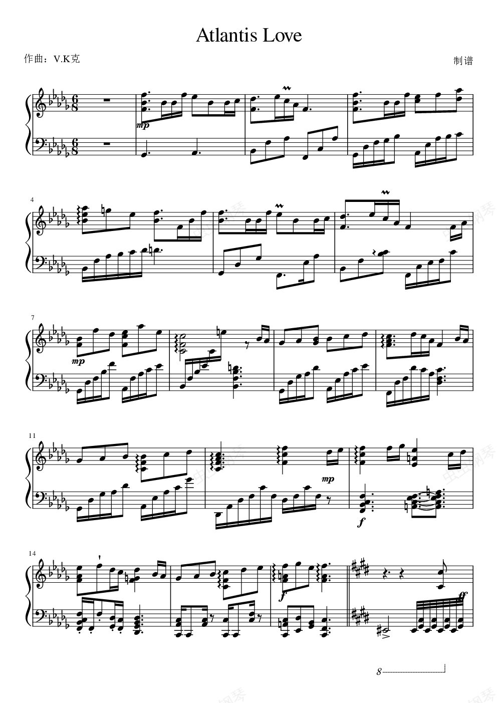 钢琴谱:亚特兰提斯之恋-Atlantis Love
