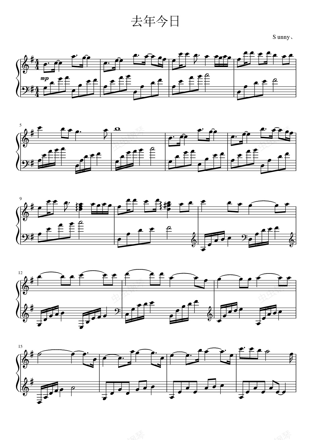把曲子命名为《去年今天》,是因为想起第一次接触虫虫钢琴已经是7年前了,虫钢记录这我和音符的故事们,故事虽不是什么荡气回肠扣人心弦的料,我曾经的作品们也丝毫不似名家大作那般令人叹为观止拍案叫绝,甚至还处处透露着青涩又或者不合乎乐理,但对于我—— 一个仅仅学过几年钢琴却在某天灵感突然降临时开始自己琢磨着怎么写曲子的非专业音乐爱好者来说,每一个音符都关于我对音乐的美好的憧憬。