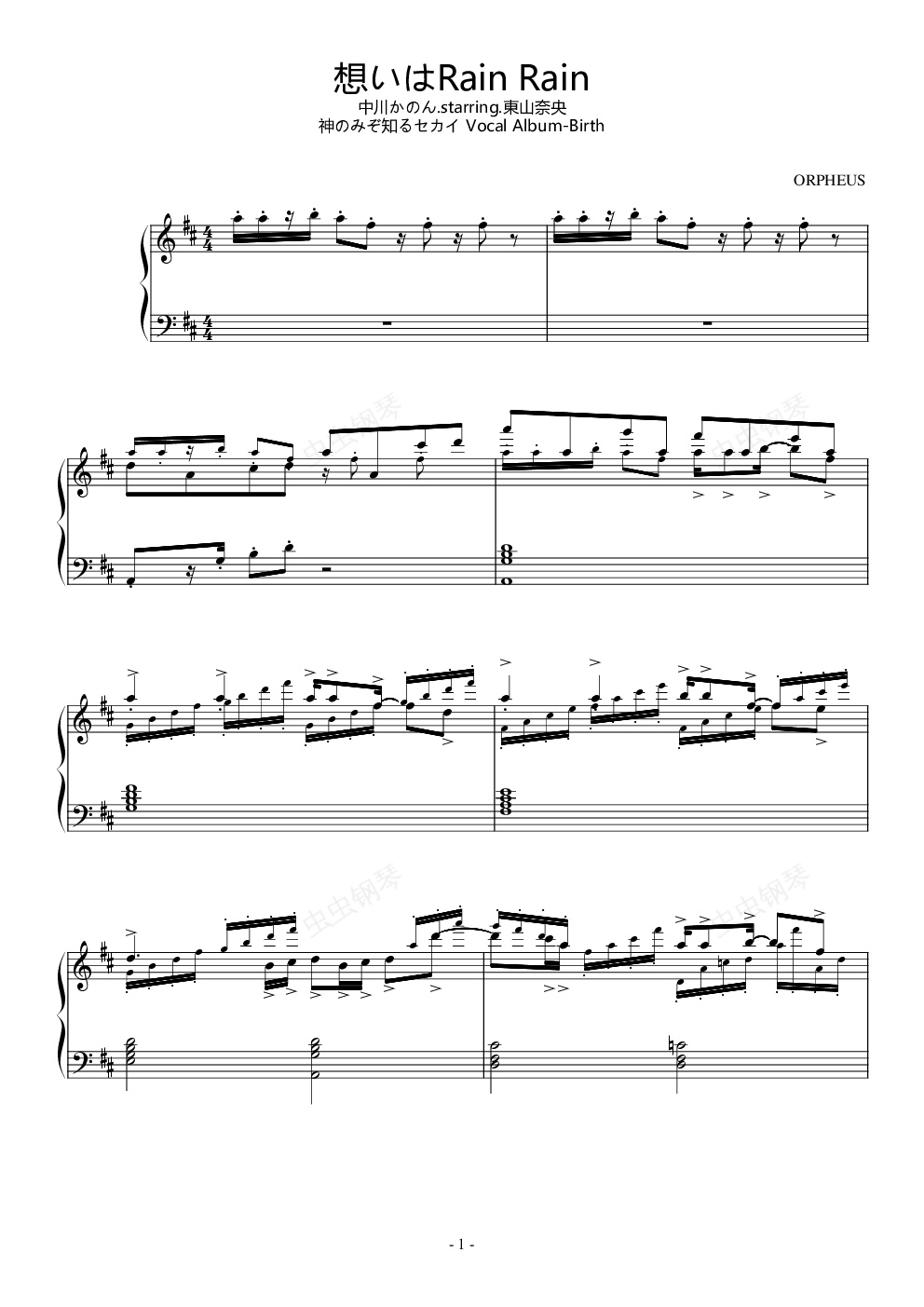 钢琴谱:想いはRain Rain