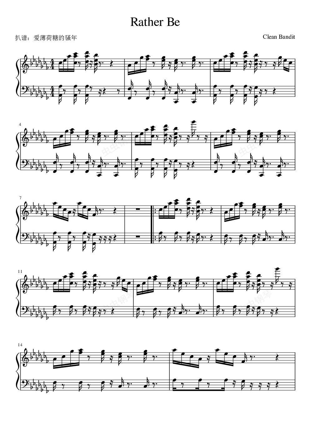 钢琴谱:Rather Be 钢琴伴奏 - Clean Bandit