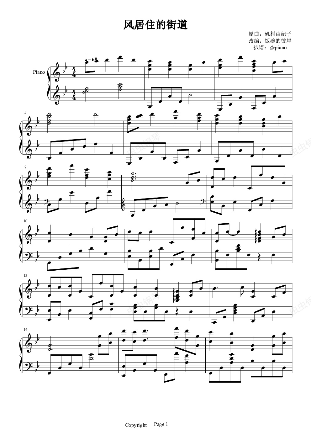 钢琴谱:风居住的街道 - 饭碗的彼岸版