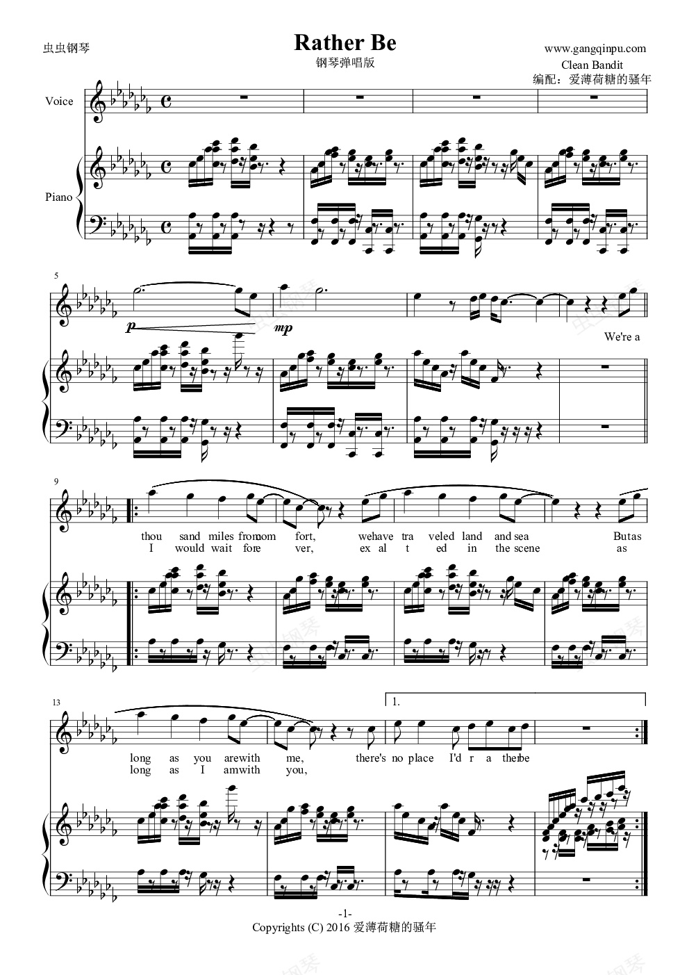 Rather Be 钢琴弹唱谱 - Clean Bandit
