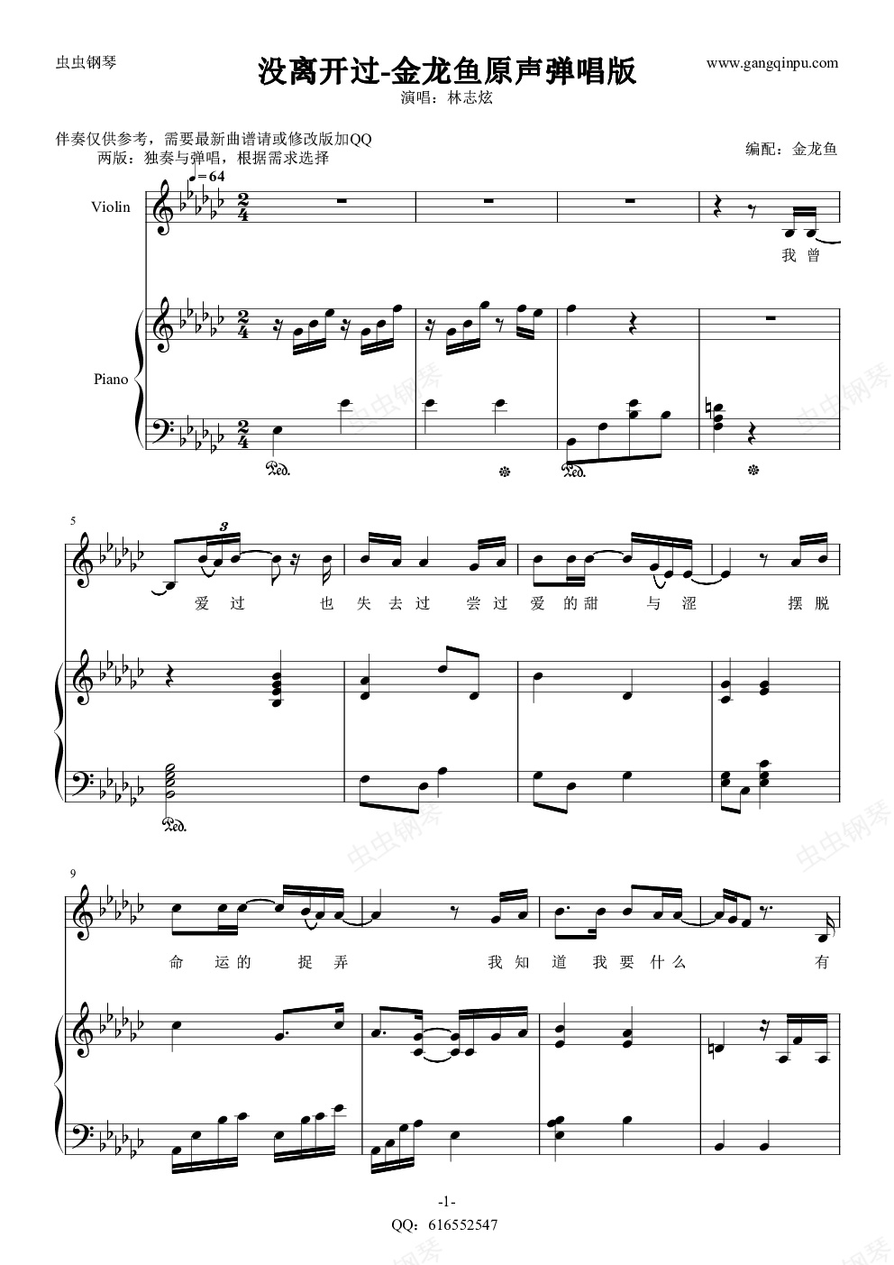 钢琴谱:没离开过弹唱-金龙鱼原声版