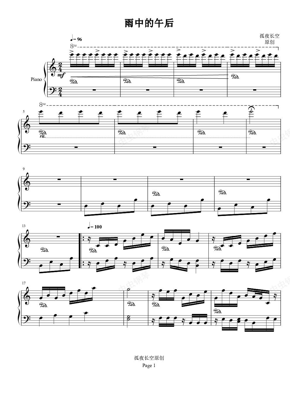 钢琴谱:雨中的午后