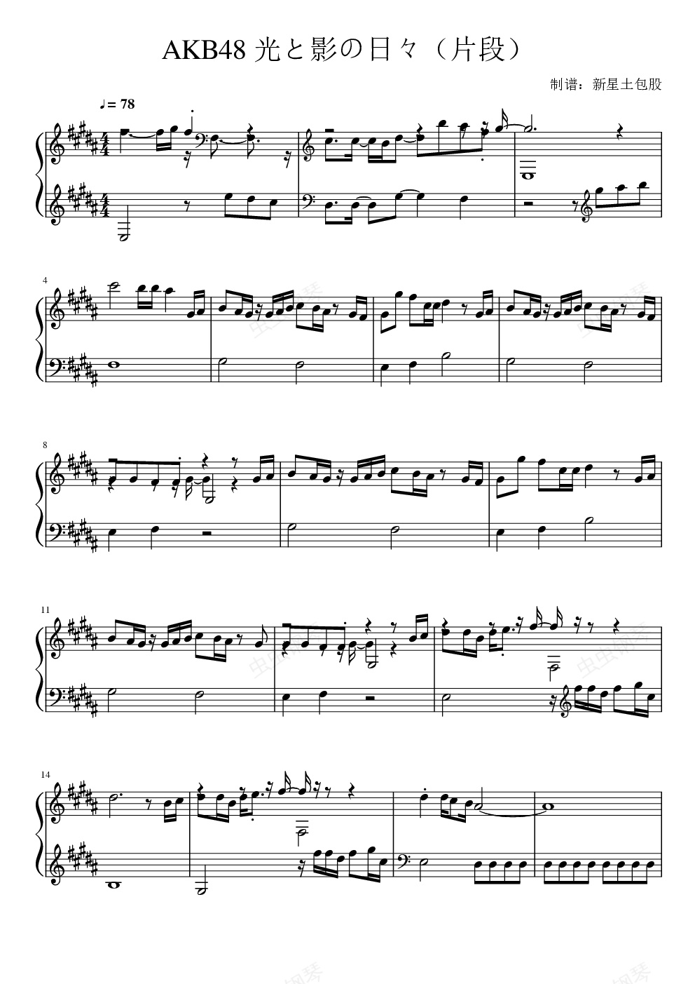 钢琴谱:AKB48 光と影の日々 (光与影的日子)