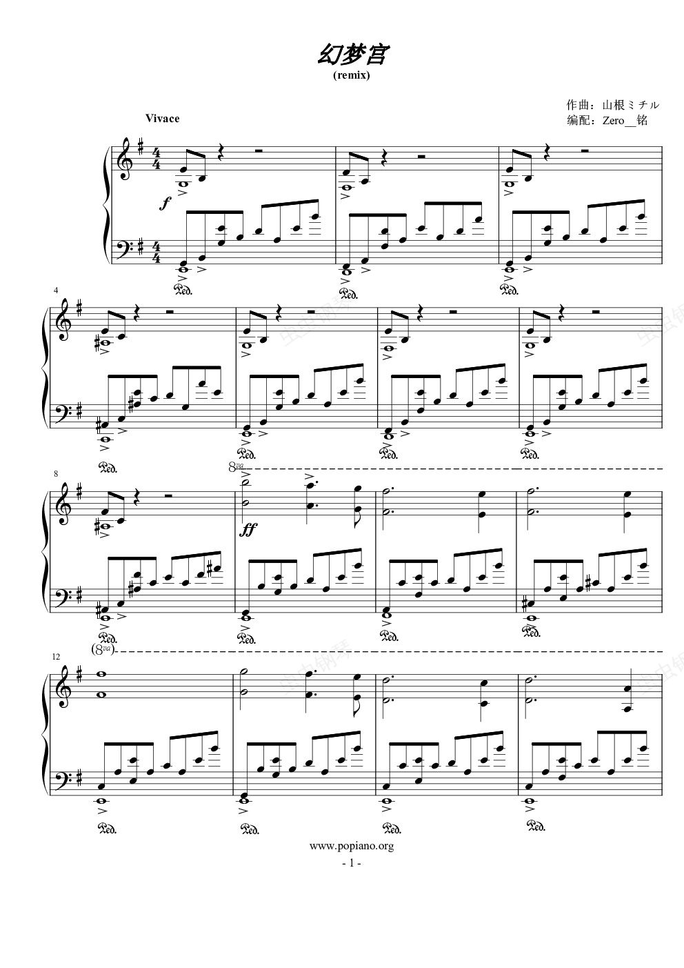 钢琴谱:【摇滚版】幻梦宫(remix)——恶魔城