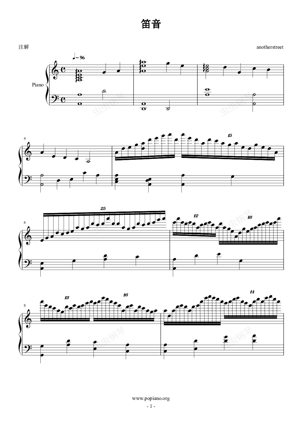 钢琴谱:笛音练习曲