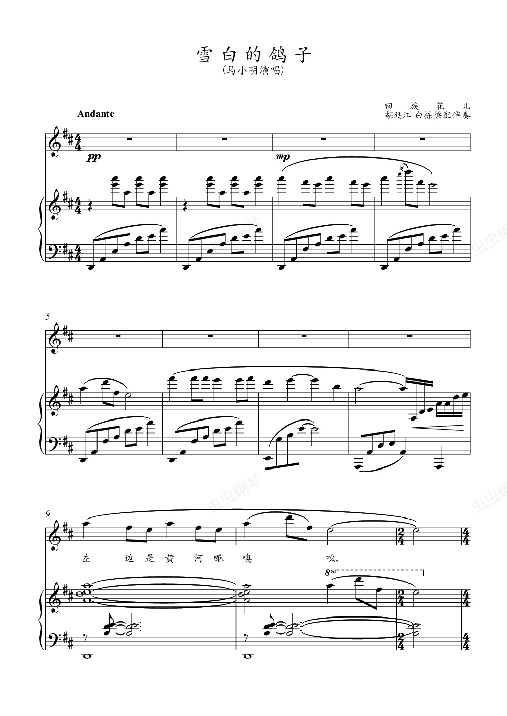 钢琴谱:《雪白的鸽子》钢琴伴奏谱正谱