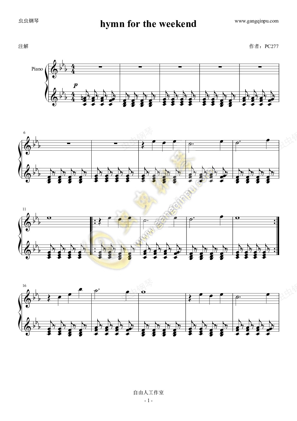 钢琴谱:酷玩Coldplay新单hymn for the weekend