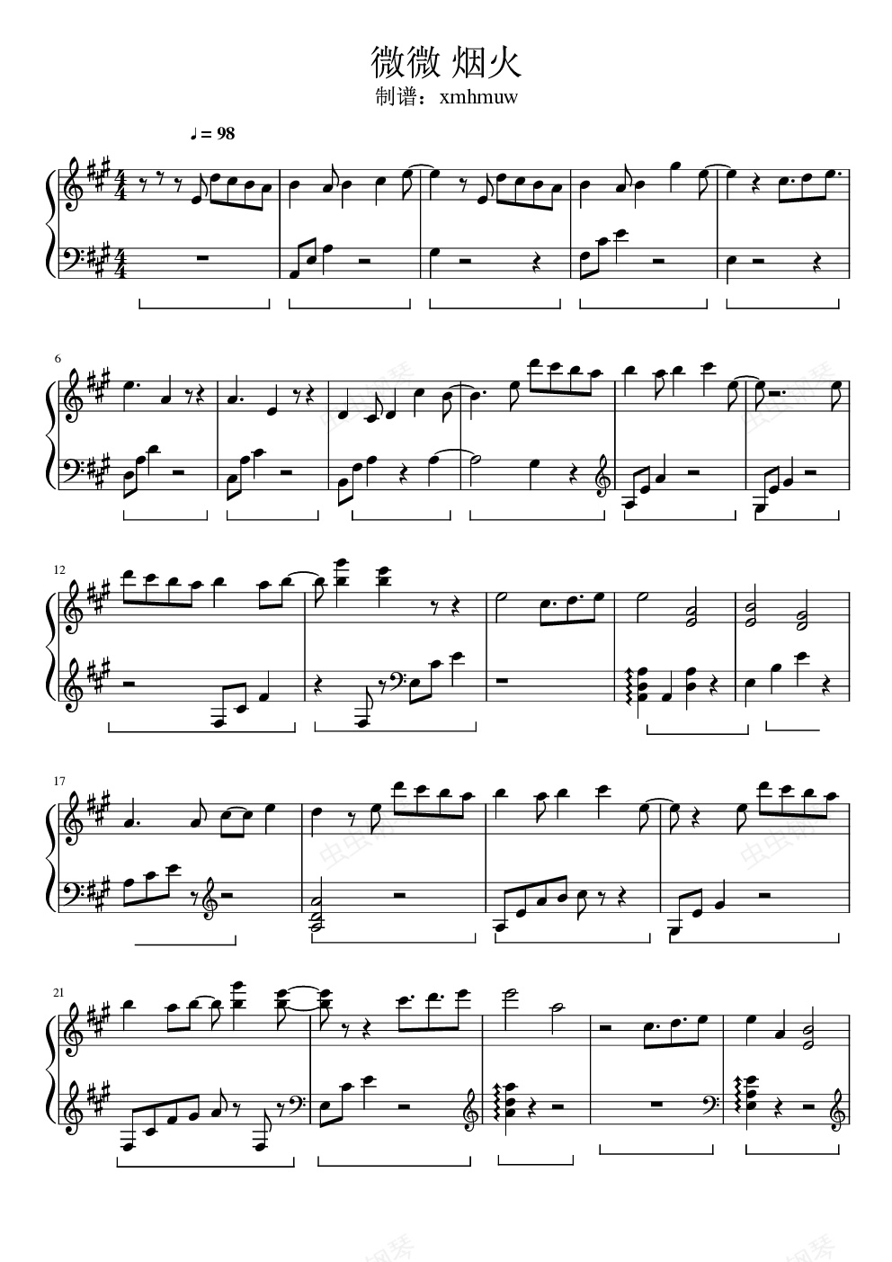 钢琴谱:烟火 微微一笑很倾城电影插曲