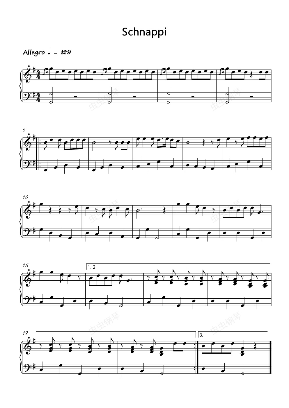 钢琴谱:Schnappi - 鳄鱼小顽皮爱洗澡