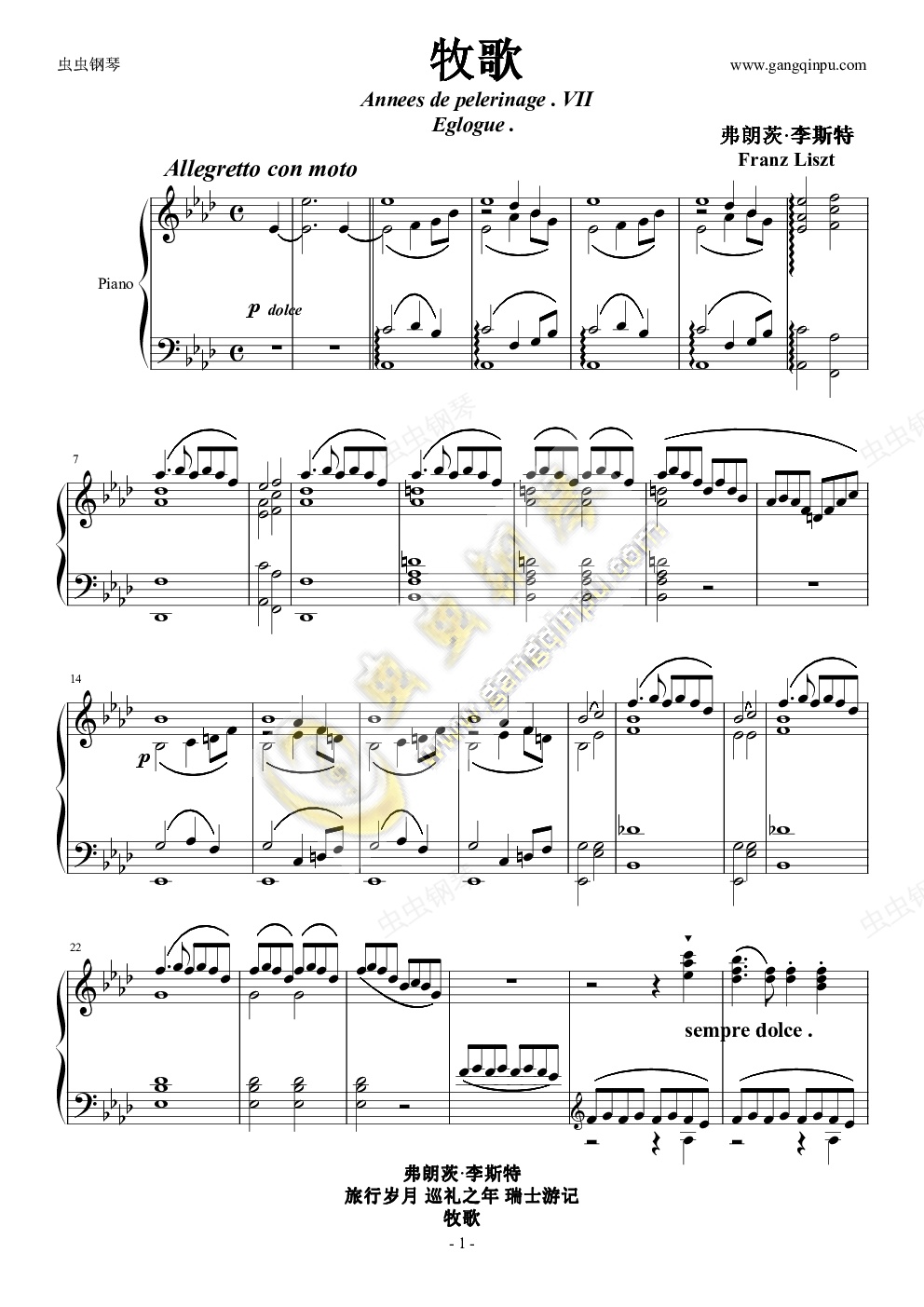 钢琴谱:旅行岁月 巡礼之年 瑞士 牧歌 Eglogue