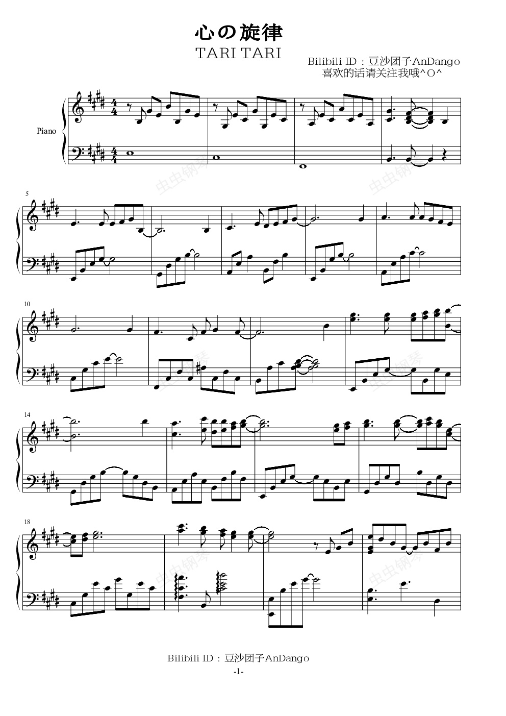 钢琴谱:TARI TARI 心の旋律 - 完整独奏版 - by 豆沙团子AnDango