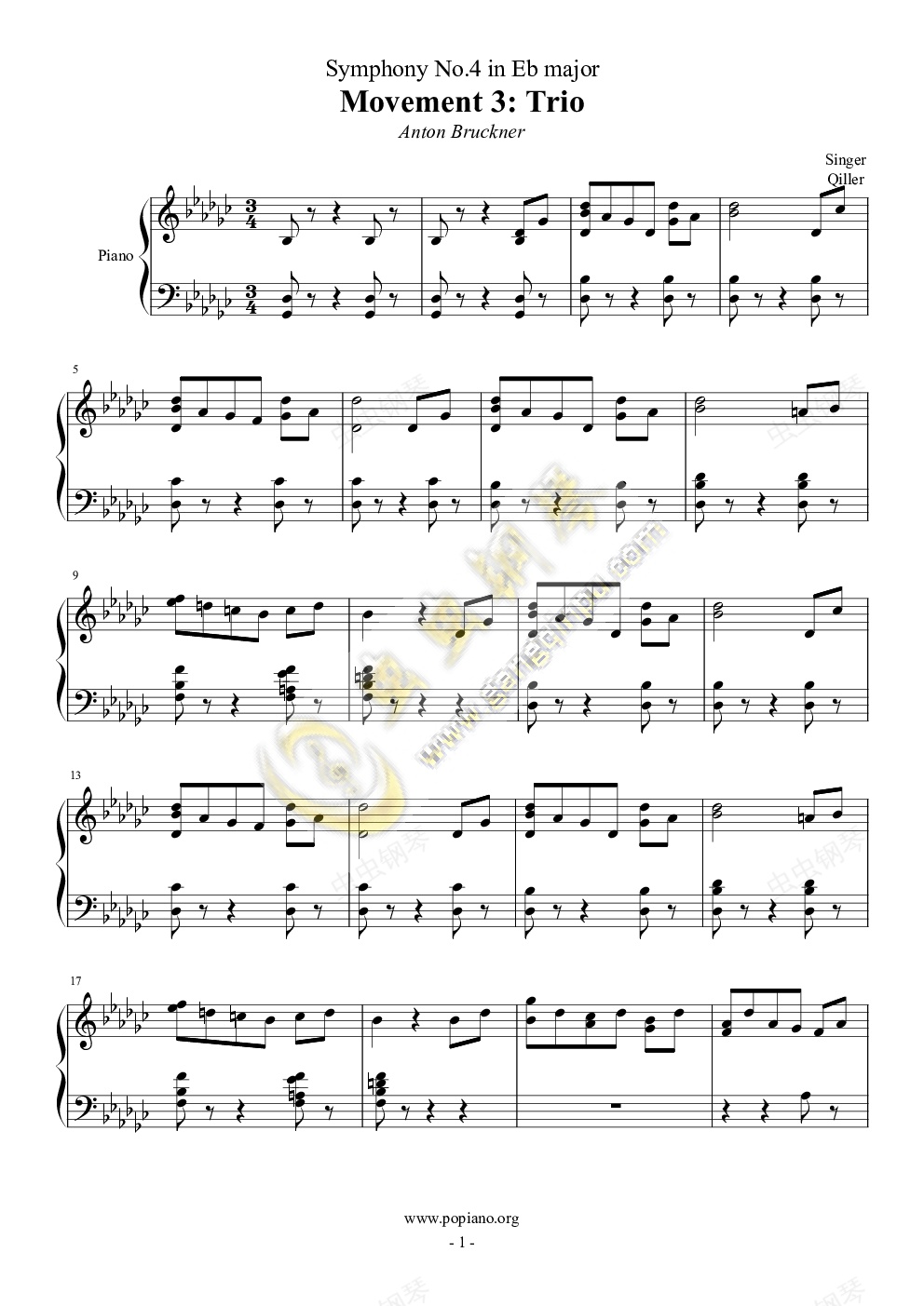 钢琴谱:布鲁克纳第四交响曲第三乐章Trio