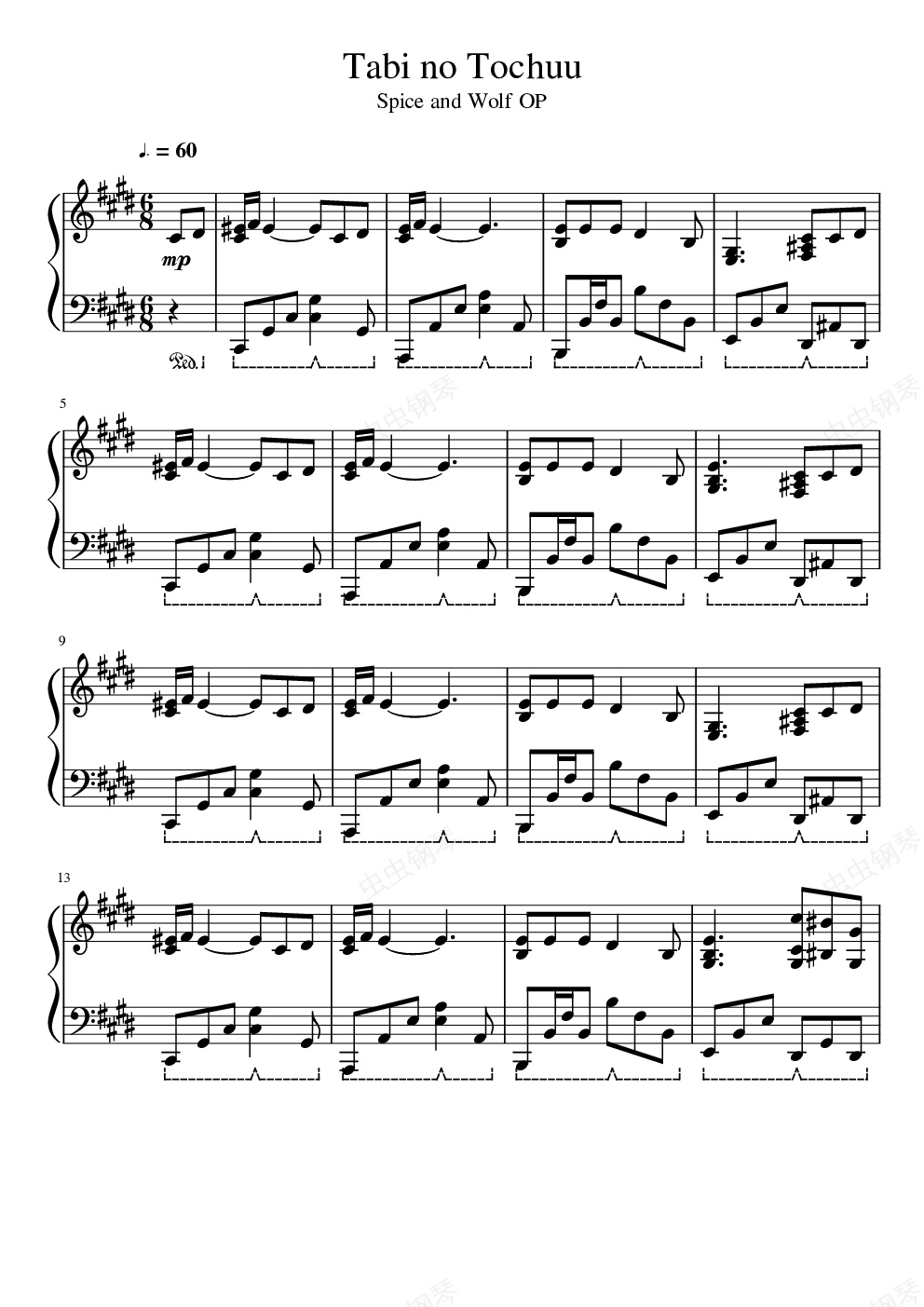 钢琴谱:【狼与香辛料 Spice and Wolf OP】人在旅途