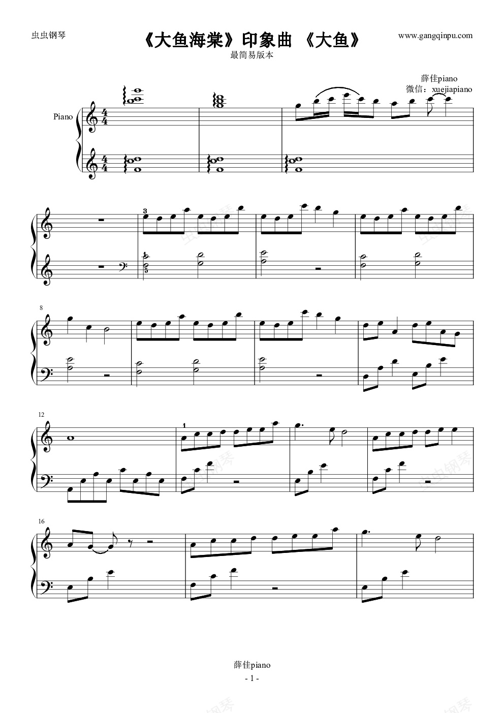 钢琴谱:大鱼 最简易版