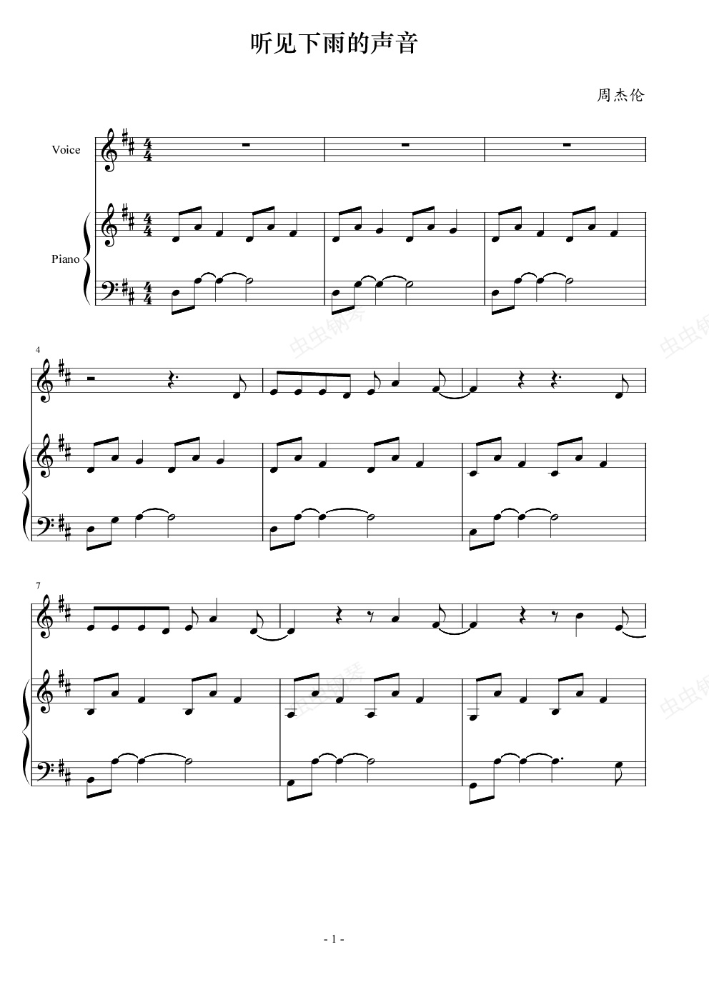 钢琴谱:低碳伴奏——《听见下雨的声音》
