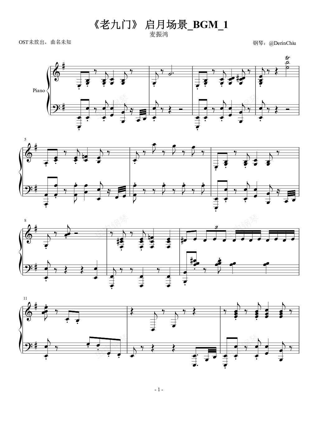 钢琴谱:《老九门》启月场景BGM