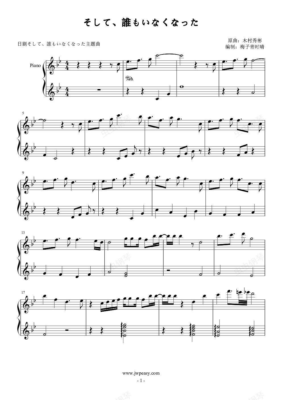 钢琴谱:そして、誰もいなくなった--日剧そして、誰もいなくなった主题曲