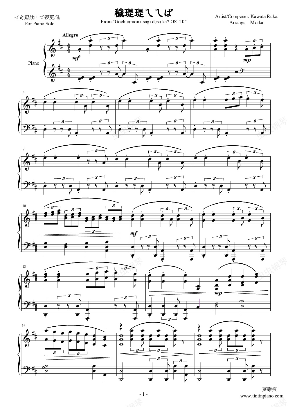 钢琴谱:点兔?OST10 - ぽかぽかうさぎ日和