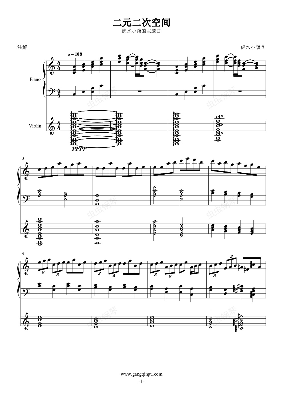 钢琴谱:二元二次空间——虎水小骥的主题曲