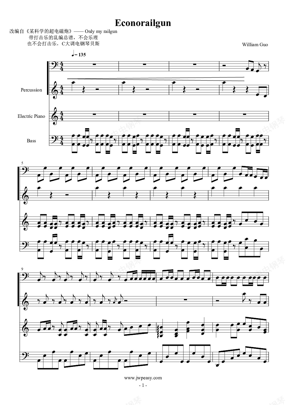 钢琴谱:Econorailgun 改编自 Only my railgun