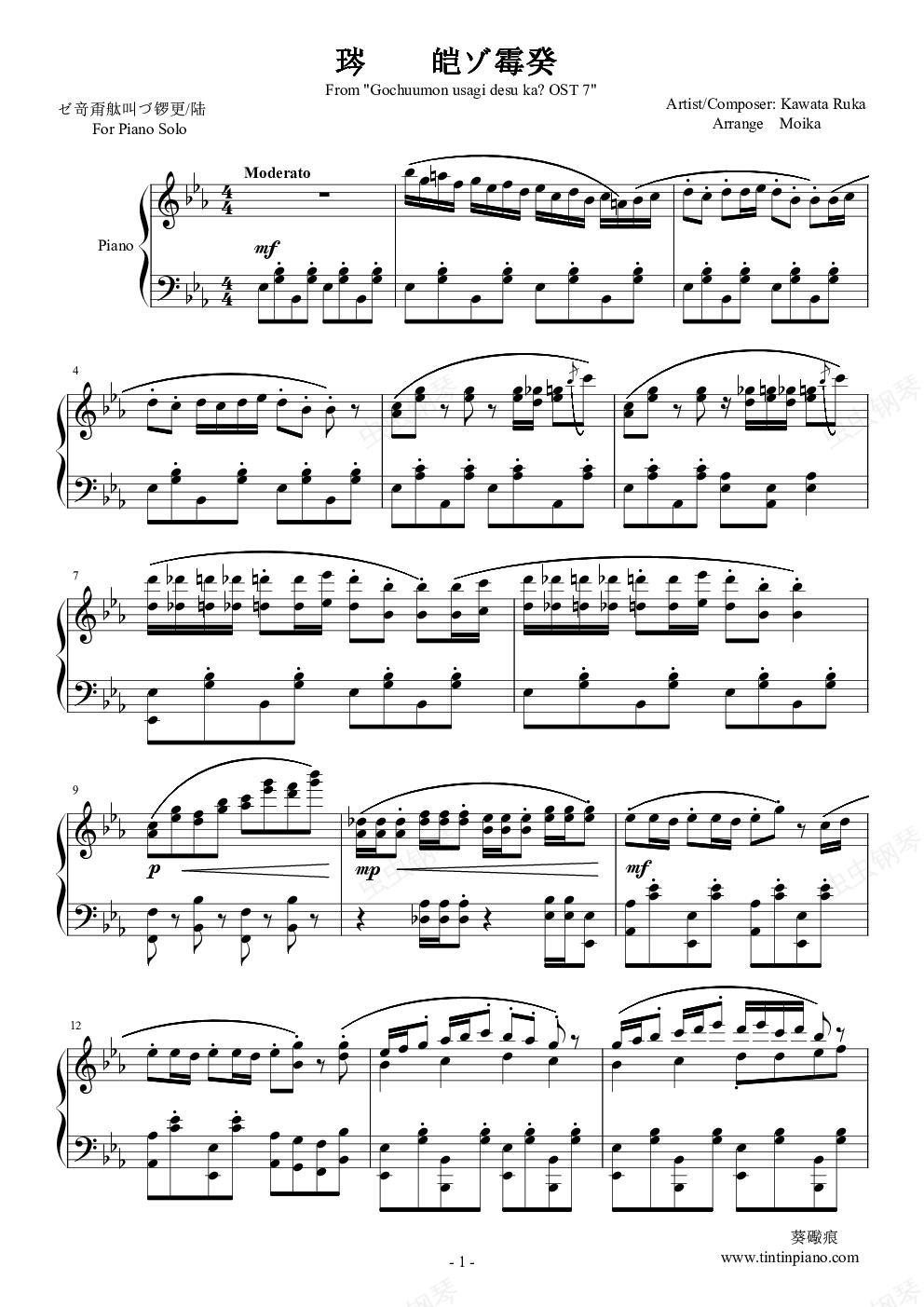 钢琴谱:点兔?OST19 - キリマンジャロだね