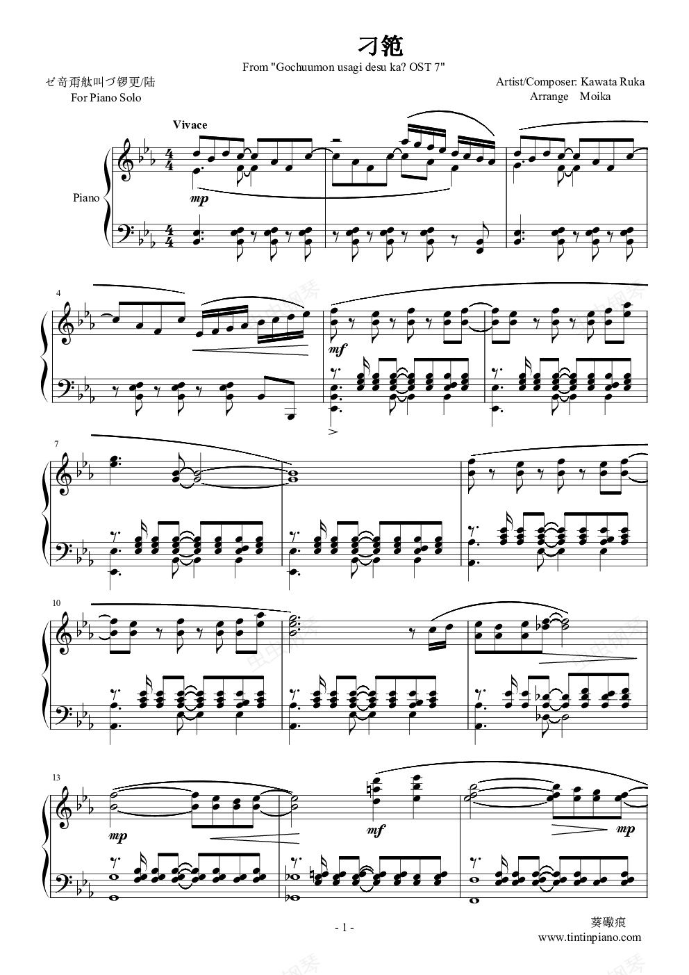钢琴谱:点兔?OST22 - 風の香る街角
