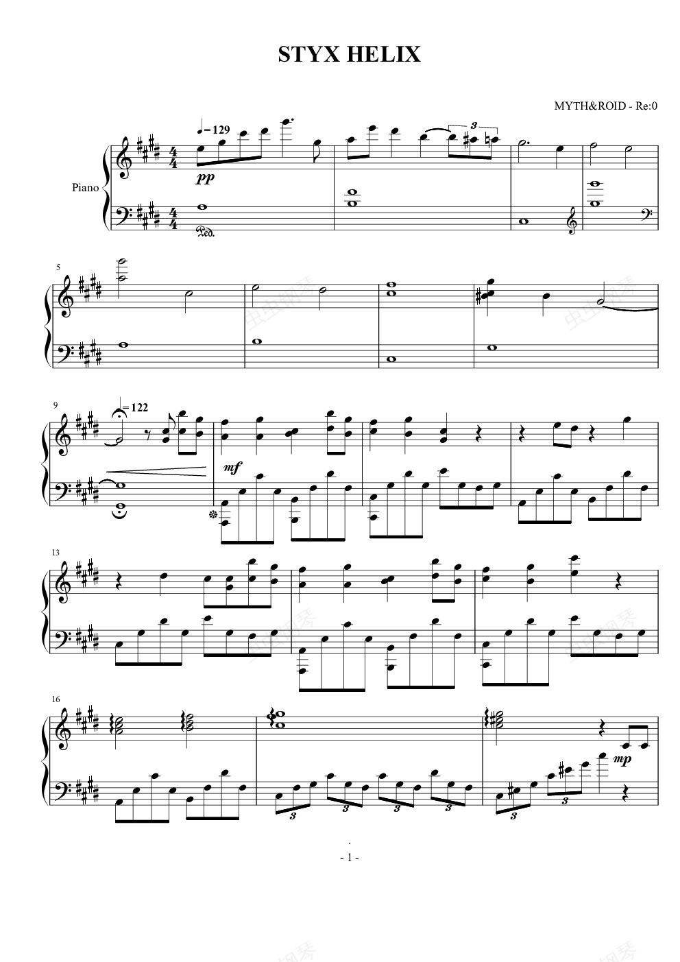 钢琴谱:STYX HELIX-Re:从零开始的异世界生活