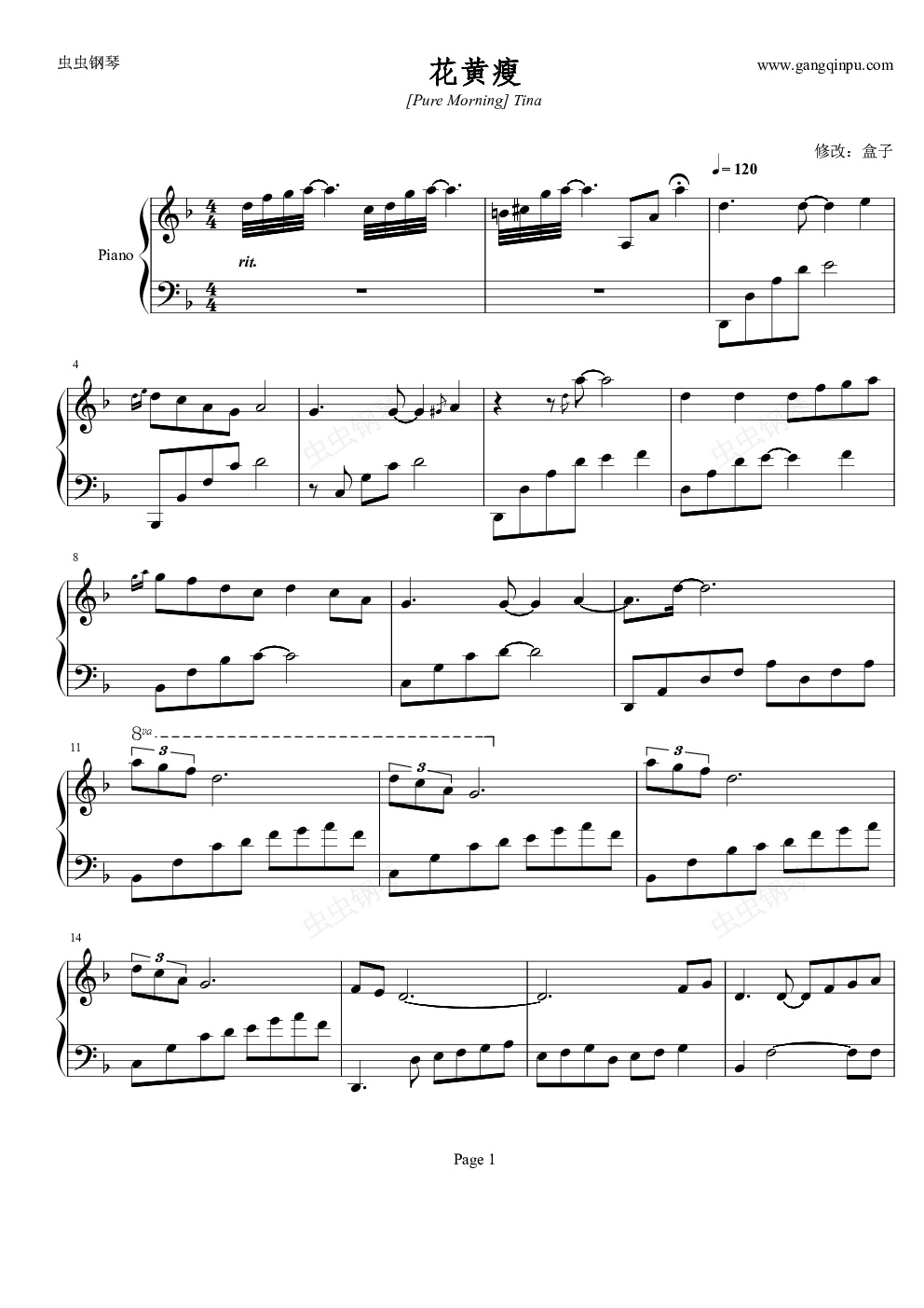 歌曲来源于pure乐团的Tina,原本的谱子来自于网上没有留名的一位大侠,然后我自己再稍加改动了几个音符。很喜欢这首古风的曲子,希望大家也喜欢。麻烦管理员选个好听的钢琴音色,谢谢! [IMG]/pu/2016/10/8/__2016_14155_[/IMG]