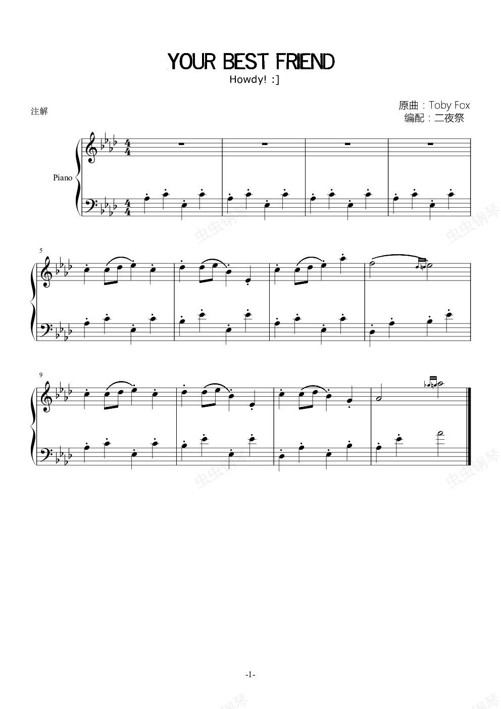 钢琴谱:【undertale】your best friend