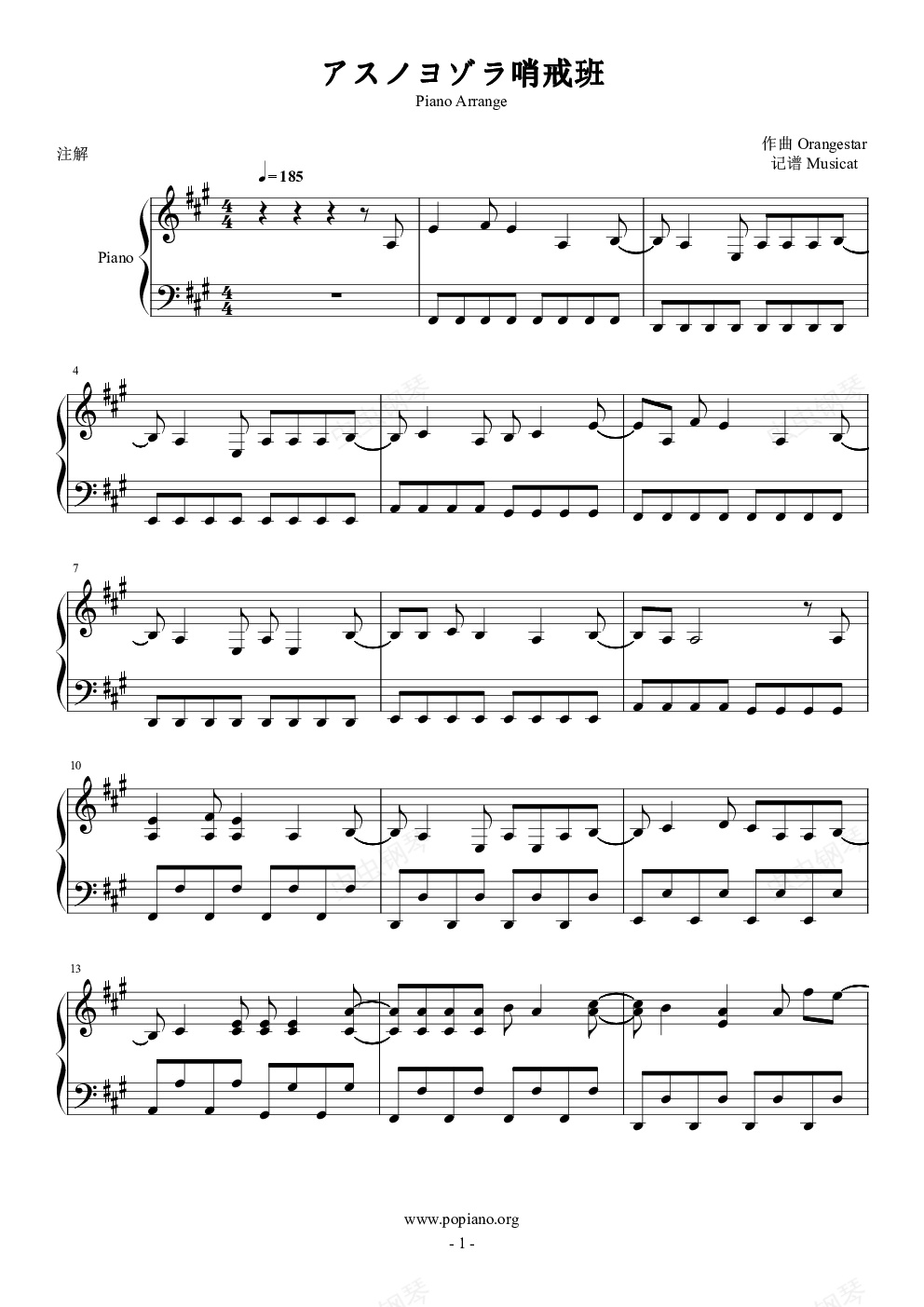 钢琴谱:アスノヨゾラ哨戒班(明日夜空的巡逻班)