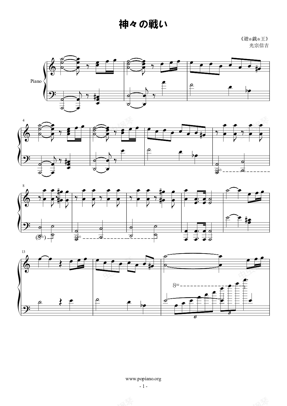 钢琴谱:【游戏王】神々の戦い