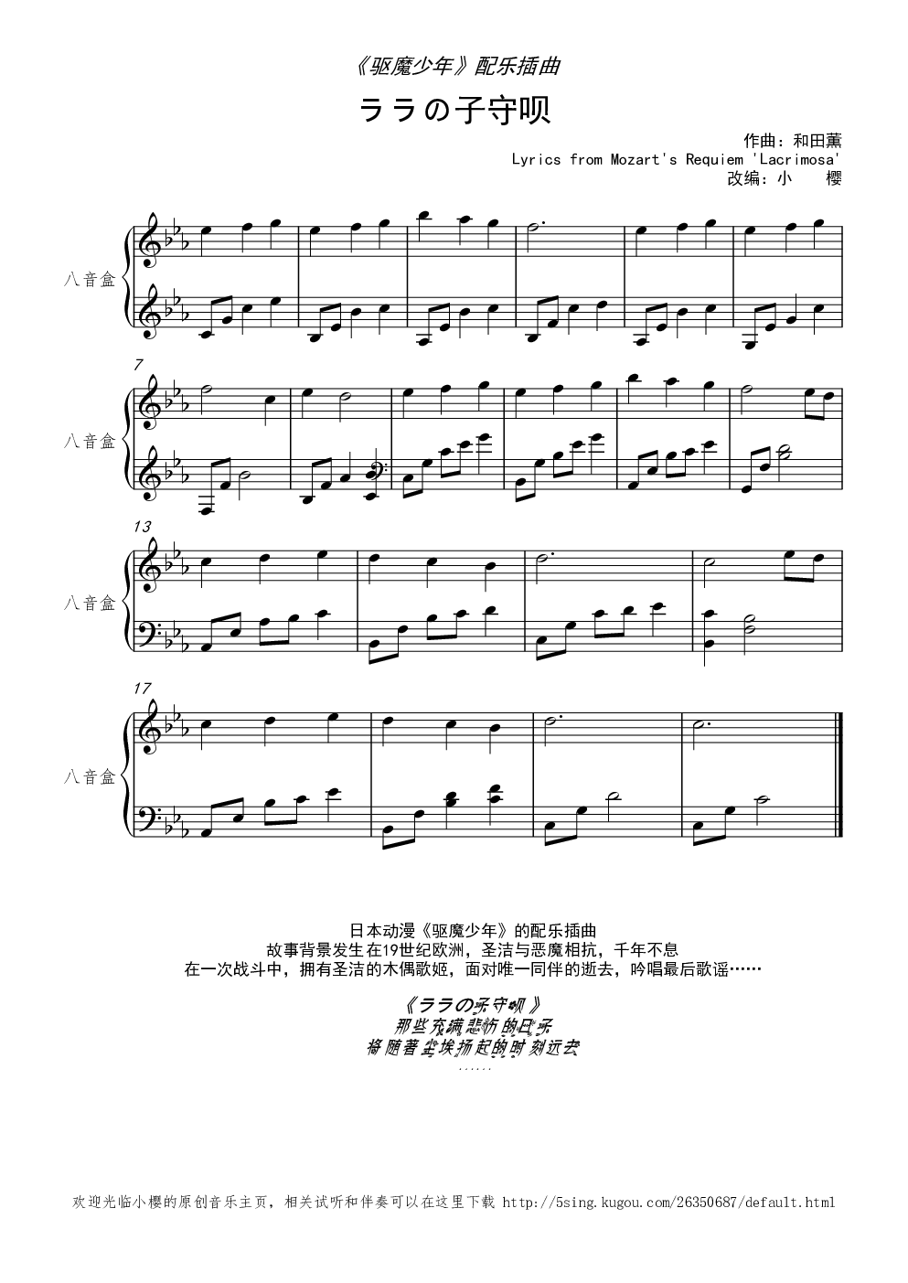 钢琴谱:【空灵八音盒】ララの子守呗(驱魔少年配乐插曲)