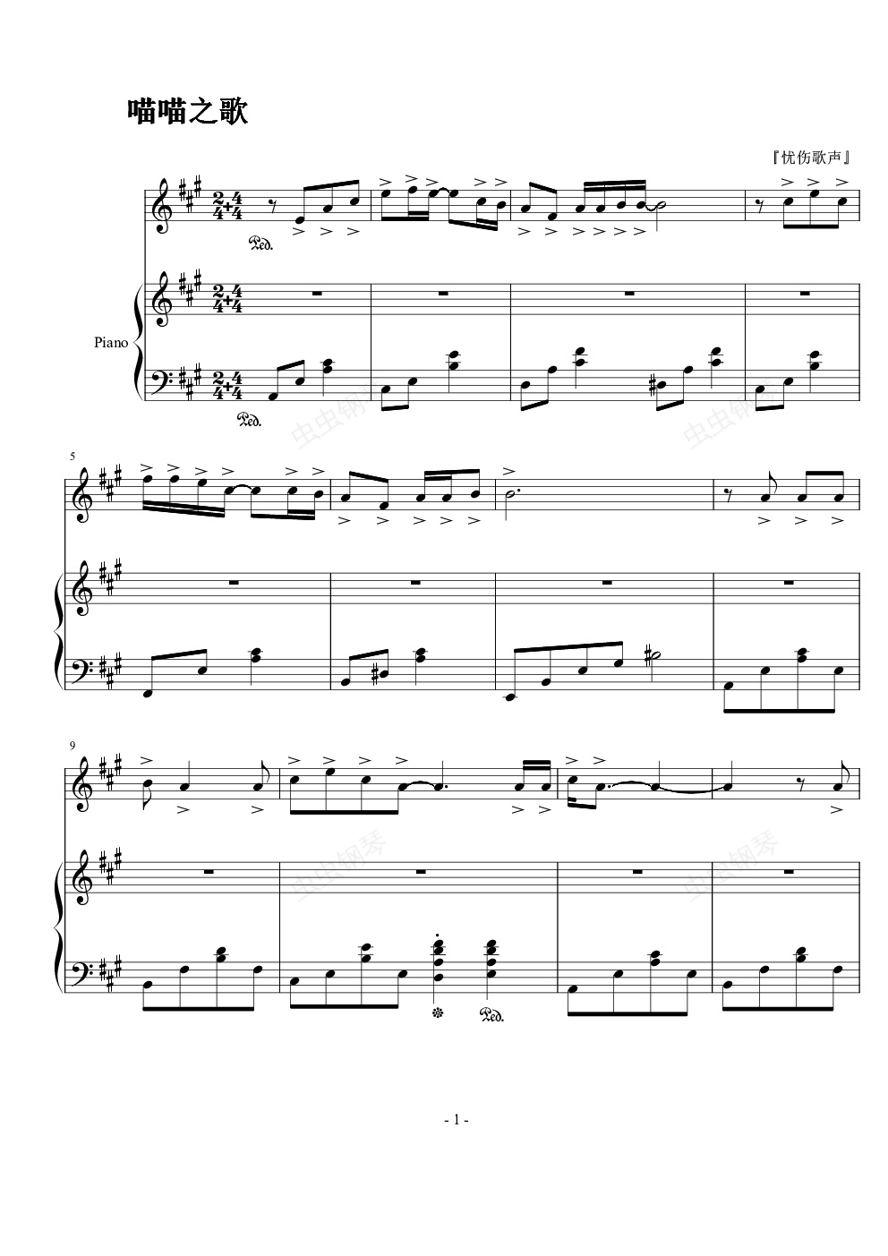 钢琴谱:神奇宝贝片尾曲《喵喵之歌》————『忧伤歌声』