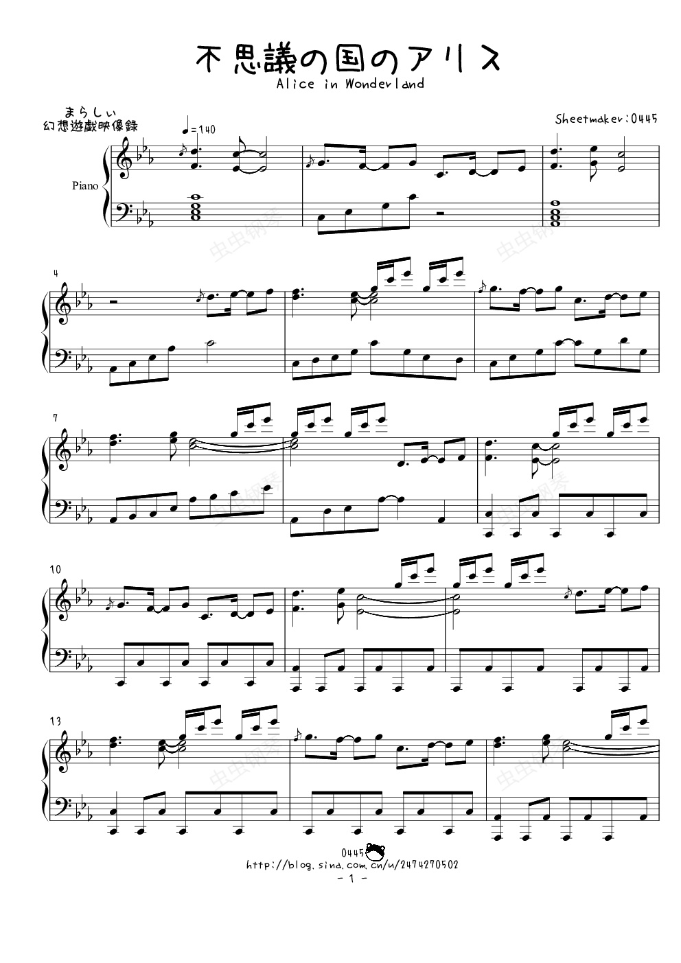 钢琴谱:【触手猴】【幻想游戏映像録】不思議の国のアリス