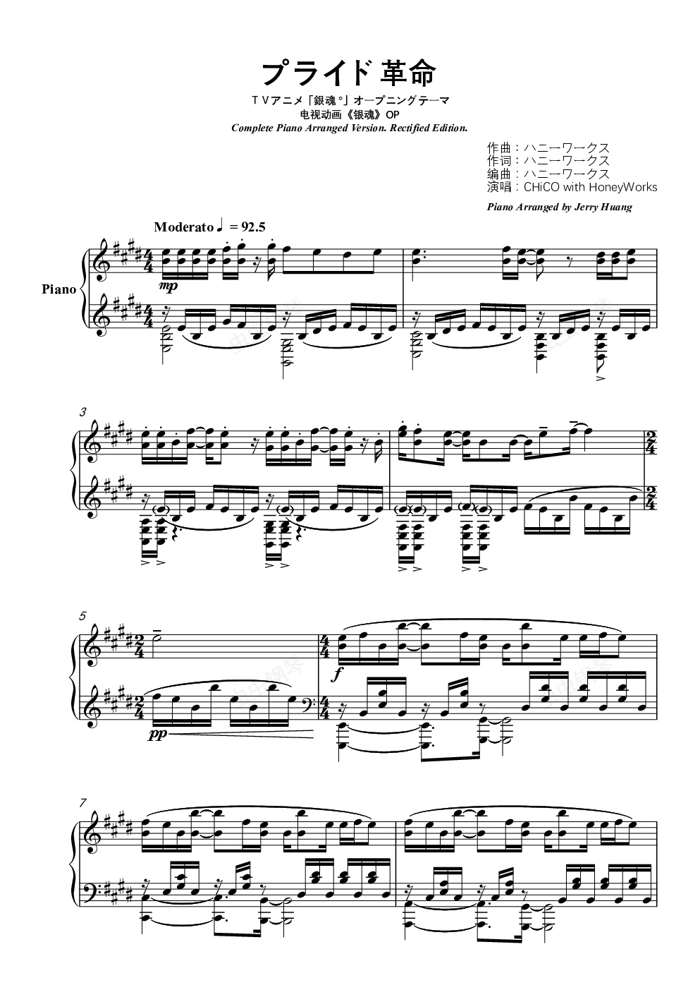 【银魂】OP プライド革命 (钢琴完整版)(修改版)