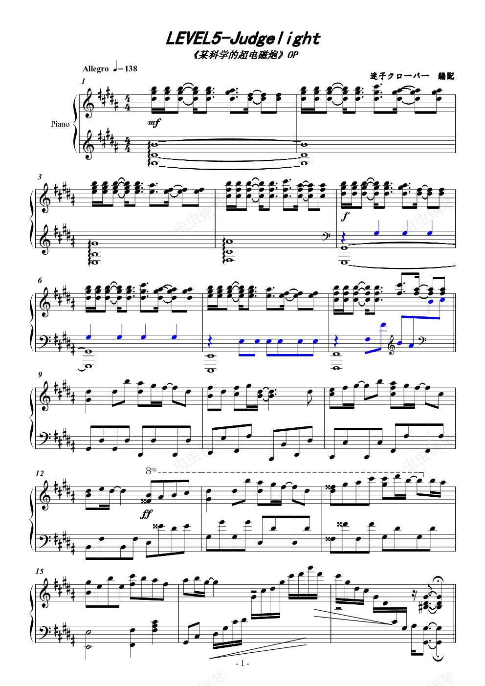 钢琴谱:【とある科学の超电磁炮】LEVEL5-Judgelight