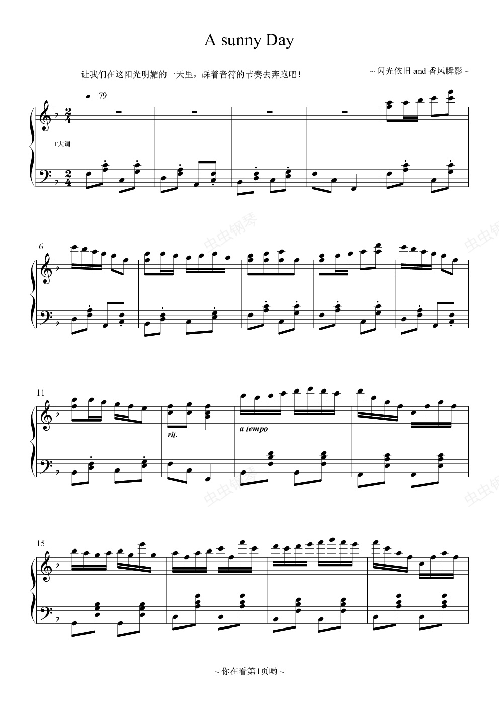 「在那石板路和木质房子组成的小镇上,灿烂的阳光照射着镇里的每一个角落,处处充满着欢乐的气息……」 「“亲爱的依酱~一起出去玩吧!”」 这周投递的曲谱是这首比较简单的曲子。现在我这里还剩下两个曲谱了,还有两个星期就投完了呢~以及下个星期期中考试,要好好加油呢~ 有件事情要说明一下的说,好像有一些人以为我投递的曲谱都是我的原创作品,然而并不是,作者要以曲谱上标注的为准,有一些曲子,包括这首,其实是我CP的作品,我只是帮忙做一些修改并且制作曲谱啦。她平时不上虫钢……嗯我应该把她拖来虫钢看看→_→ 呐,希望大家喜欢这首曲子~ 曲谱相关资源下载: 「/s/1」